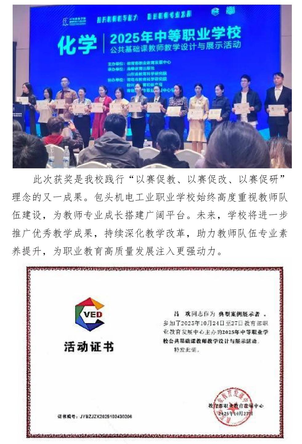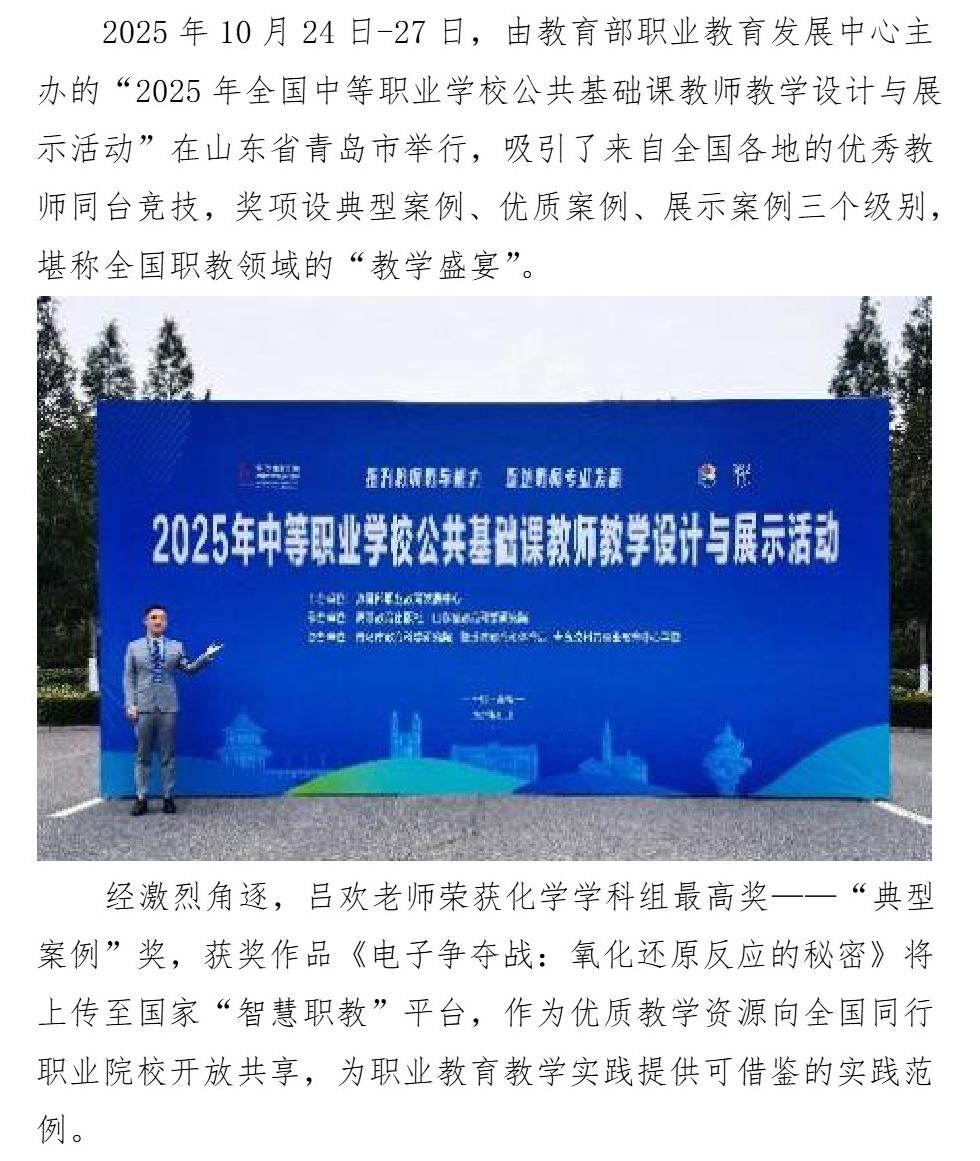 喜讯——吕欢老师在 2025 年全国中职教师教 学设计与展示活动中创佳绩